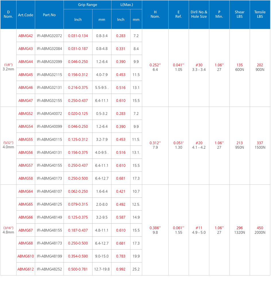 Multigrip Blind Rivet(Aluminum&Stainless steel)