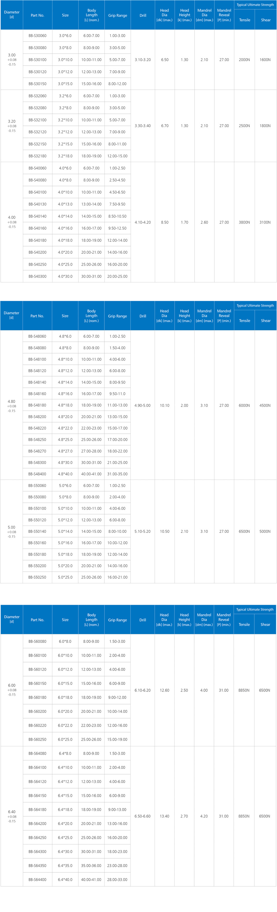 Open Type Blind Rivet(All stainless steel)