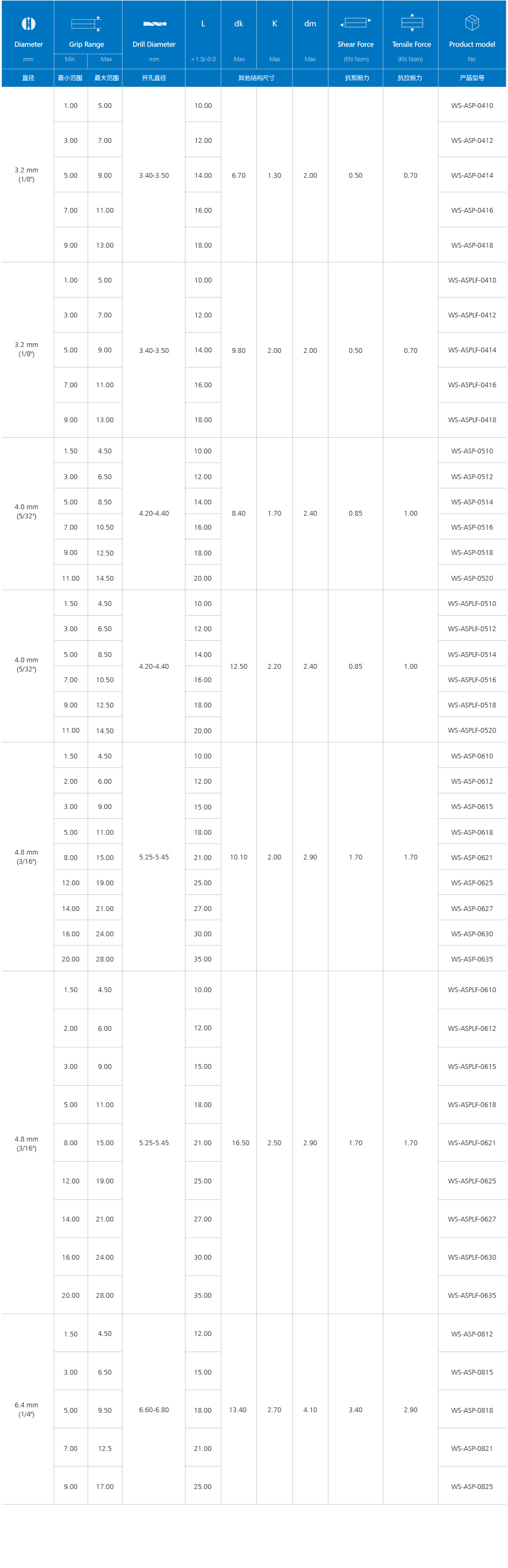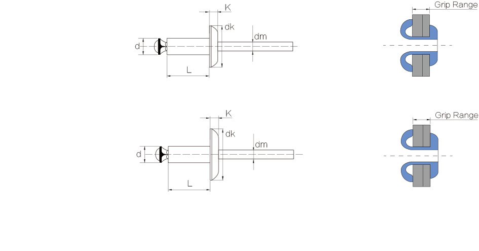Multi-grip Blind Rivets
